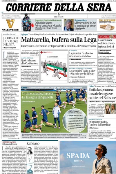 La polemica politica creata dalla Lega sulle parole del presidente della Repubblica in occasione delle celebrazioni per la Festa della Repubblica è in apertura su quasi tutti i giornali di oggi: il senatore della Lega Borghi ha chiesto le sue dimissioni per aver fatto riferimento, in vista delle prossime elezioni europee, alla sovranità dell’Unione Europea, ricevendo critiche dall’opposizione e anche da parte della maggioranza di governo. Il Fatto si occupa invece della proposta di tregua fra Israele e Hamas presentata dal presidente degli Stati Uniti Biden.