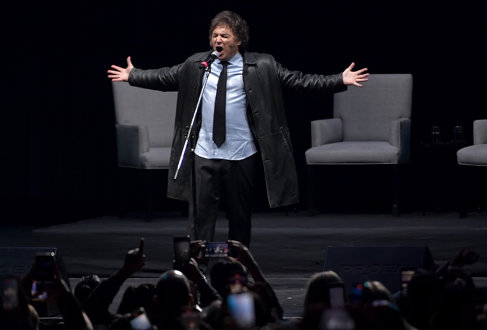 Javier Milei durante la presentazione dei suo ultimo libro, il 22 maggio 2024 (Photo by Marcelo Endelli/Getty Images)