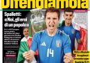 La riunione del G7 in Puglia è sempre la notizia principale su quasi tutte le prime pagine di oggi, con l’intervento di ieri di Papa Francesco sull’intelligenza artificiale, gli aiuti economici all’Ucraina e il rifiuto di una proposta russa per far finire la guerra in Ucraina, e le discussioni sui diritti, con l’esclusione dalla dichiarazione finale dei riferimenti all’aborto, all’identità di genere e all’orientamento sessuale. La Verità, Libero e il Riformista titolano invece sulla liberazione in Ungheria di Ilaria Salis e sulla decisione del tribunale di Genova che ha respinto la richiesta di revoca degli arresti domiciliari per il presidente della regione Liguria Giovanni Toti. I giornali sportivi si occupano degli Europei maschili di calcio, iniziati ieri sera con la vittoria della Germania nella partita inaugurale, e presentano la partita di stasera dell’Italia con l’Albania.