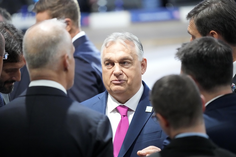 Viktor Orbán durante il summit della NATO a Washington DC, l’11 luglio (EPA/CHRIS KLEPONIS)