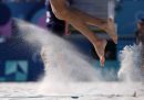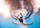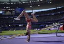 Il decimo giorno delle Olimpiadi di Parigi è stato il giorno della prima medaglia d’oro di sempre per l’Italia nella ginnastica artistica femminile, quella ottenuta da Alice D’Amato nella finale di specialità alla trave, in cui la compagna Manila Esposito ha vinto la medaglia di bronzo. Ma è stato anche il giorno dell’oro di Diana Bacosi e Gabriele Rossetti nello skeet a squadre miste e della combattutissima partita di pallavolo con cui la Nazionale maschile ha fatto una grande rimonta, annullato quattro match point del Giappone e si è qualificata alle semifinali. Tra le altre cose olimpiche che valeva la pena fotografare ci sono piedi che spuntano dall’acqua, aste che fanno scherzi, momenti di concentrazione, abbracci e qualche caduta.