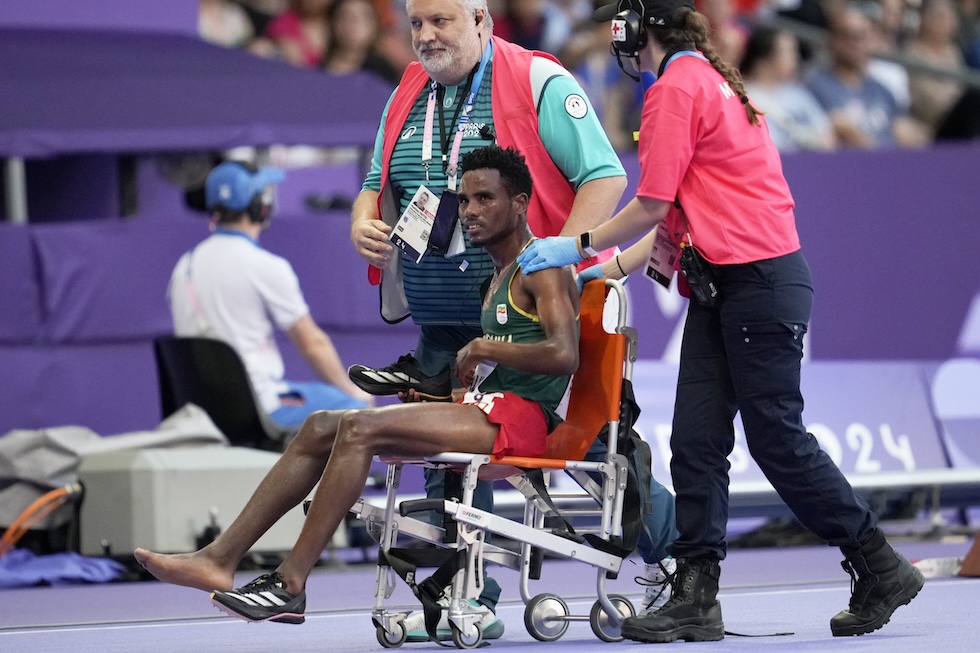 L’etiope Samuel Firewu è uscito malconcio dalla sua batteria, in cui comunque si è qualificato per la finale di domani (AP Photo/Ashley Landis)