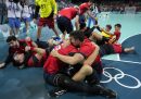 Negli ultimi due giorni di Parigi 2024 sono state assegnate ancora molte medaglie e ci sono stati nuovi primati inaspettati: come i due nuovi record olimpici maschile e femminile nella maratona, stabiliti dall’etiope Tamirat Tola e dalla nederlandese Sifan Hassan nonostante un percorso eccezionalmente faticoso. Sabato, nel quindicesimo giorno di gare, l’Italia ha vinto due medaglie di bronzo e una d’argento, rispettivamente nella ginnastica ritmica, nel pentathlon moderno e nel ciclismo su pista, mentre Gianmarco Tamberi è stato eliminato presto dalla finale del salto in alto, a cui arrivava da campione olimpico, mondiale ed europeo in carica, ma anche con diversi problemi fisici. Domenica invece la Nazionale di pallavolo femminile ha vinto la sua prima medaglia d’oro olimpica di sempre, battendo in maniera netta e spettacolare gli Stati Uniti per 3 set a 0. Tra le altre foto che valeva la pena scattare nell’ultimo fine settimana olimpico ci sono state poi molte bandiere, medaglie ed espressioni di gioia e fatica.