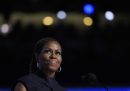 In uno dei suoi rarissimi interventi politici – l’ultimo risaliva a quattro anni fa, malgrado i disinformati pettegolezzi giornalistici che ciclicamente la descrivono come potenziale candidata – Michelle Obama ha parlato molto della madre, morta poche settimane fa, mettendo la sua storia nel contesto più ampio della storia del paese e legandola alla storia della famiglia di Harris. «Non sapevo se sarei riuscita a essere qui con voi», ha esordito. «Ma ho scelto di esserci per senso del dovere, per onorare la sua memoria, e per ricordare a tutti noi che non dobbiamo sprecare il sacrificio che le persone più grandi di noi hanno fatto per darci un futuro migliore».