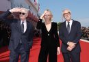 Giovedì sera all’81esima Mostra del cinema di Venezia è stato presentato il film in concorso Maria, del regista Pablo Larraín, un biopic su Maria Callas, la cantante lirica più famosa al mondo. Lei è interpretata da Angelina Jolie e nel cast ci sono Pierfrancesco Favino e Alba Rohrwacher, tra quelli più fotografati ieri. L’altro film in concorso presentato ieri è stato El Jockey di Luis Ortega, con protagonista il fantino Remo Manfredini (interpretato da Nahuel Pérez Biscayart), in crisi con la fidanzata e indebitato con un boss mafioso. Il giorno della gara più importante della sua vita ha un incidente e comincia a vagare per le strade di Buenos Aires in cerca della propria vera identità. Molte attenzioni sono state riservate poi a Cate Blanchett e alla serie tv fuori concorso di cui è protagonista, Disclaimer di Alfonso Cuarón, di cui ieri sono stati mostrati tutti i primi quattro episodi (e oggi, venerdì 30, saranno presentati gli ultimi tre).