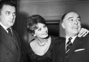 Sophia Loren con i politici statunitensi Walter Baring e Peter Rodino a una festa in suo onore presso l’ambasciata italiana a Washington, DC, Stati Uniti, 20 agosto 1957 (Courtesy Everett Collection/Contrasto)