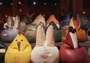 C’erano molti accessori – il noto modello di borsa Bamboo, scarpe, gioielli, foulard, occhiali – con cui Gucci punta a rimpolpare le vendite un po’ in difficoltà, e molti cappotti, probabilmente il capo che De Sarno è più bravo a disegnare. La sfilata si è conclusa con le modelle che sorridevano, ballavano e cantavano sulla colonna sonora di Non voglio mica la luna della cantante Fiordaliso, trasmettendo anche così il messaggio gioioso e vitale della Gucci di De Sarno.