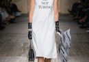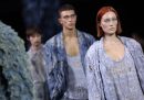 Fendi, infine, ha festeggiato i suoi 100 anni con una collezione che ha reso omaggio all’archivio e agli anni Venti, in cui il marchio fu fondato, e agli anni Novanta, quelli del grande successo commerciale. Le modelle sfilavano su una colonna sonora in cui Silvia Venturini Fendi, direttrice creativa della linea maschile e degli accessori, parla di moda con la madre Anna, figlia di Adele, che aprì il primo negozio Fendi a Roma, nel 1925. I gioielli sono stati disegnati da Delfina, figlia di Silvia, mentre le borse, come sempre, da Silvia, l’inventrice del famoso modello Baguette. Ad alcuni critici la sfilata è piaciuta, altri invece l’hanno ritenuta troppo simile allo stile di Miu Miu, il marchio per le ragazze disegnato da Miuccia Prada.