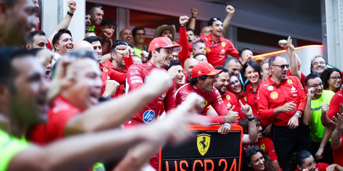 I due piloti della Ferrari hanno corso un’ottima gara sin dalla partenza: alla prima curva Leclerc ha subito guadagnato tre posizioni, superando in un solo colpo Sainz, Verstappen e Norris. Leclerc è rimasto in testa per tutta la gara, mantenendo un passo difficile da pareggiare per gli avversari e potendo contare su un’ottima prestazione delle gomme, che non si sono usurate com’era successo negli scorsi anni in varie occasioni (anche al Gran Premio degli Stati Uniti del 2023, quando Leclerc partì primo ma fu costretto a ritirarsi per i danni al fondo causati dall’usura delle gomme).