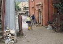 Ci sono ancora vie allagate, anche in centro, cancelli sfondati, mucchi di oggetti per strada e tanti volontari a spalare il fango, mentre si teme per le prossime piogge