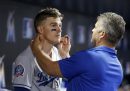 Negli Stati Uniti si stanno giocando le World Series, le finali del principale campionato di baseball (l’MLB), tra New York Yankees e Los Angeles Dodgers. I Dodgers sono in vantaggio per 3 partite a 1 e potrebbero chiudere la serie dalla prossima, perché si gioca al meglio delle 7 e vince chi arriva prima a 4. Chi le sta seguendo privandosi del sonno, o chi sta saggiamente recuperando gli highlights la mattina successiva, avrà notato che alcuni giocatori stanno in campo con due strisce colorate di nero sotto gli occhi, il cosiddetto eye black.
