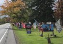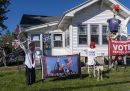 Come per ogni elezione presidenziale, nei giardini di molte case statunitensi sono di nuovo spuntati i cartelli elettorali, quelli con loghi, slogan e i nomi dei candidati di questo o quel partito. Nonostante da tempo la propaganda elettorale si faccia perlopiù sui social network, e non solo a ridosso del voto, ormai i cartelli nei giardini sono una presenza tradizionale: spesso sono accompagnati da bandiere, scritte ironiche e decorazioni di Halloween, dato il periodo in cui si tengono le elezioni. Anche se la loro storia risale all’Ottocento, sono diffusi soprattutto dagli anni Sessanta e sono disciplinati da stato a stato e da caso a caso: un po’ come gli endorsement delle celebrità non spostano necessariamente molti voti, ma hanno comunque il loro perché, per varie ragioni.