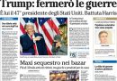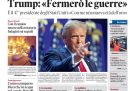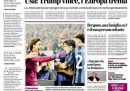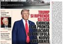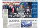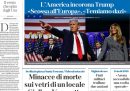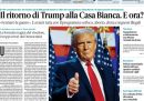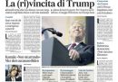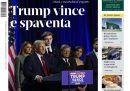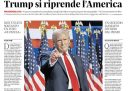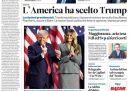 La vittoria del candidato repubblicano Donald Trump alle elezioni presidenziali negli Stati Uniti è la notizia su cui aprono tutti i giornali di oggi; i titoli sottolineano il suo successo, più netto di quanto previsto dai sondaggi, le sue dichiarazioni nel primo discorso dopo le elezioni, le reazioni in Italia al risultato, e la vittoria del partito repubblicano che probabilmente ottiene la maggioranza sia alla Camera che al Senato. I giornali sportivi festeggiano le vittorie di Atalanta e Inter nelle partite della Champions League maschile di calcio giocate ieri sera.