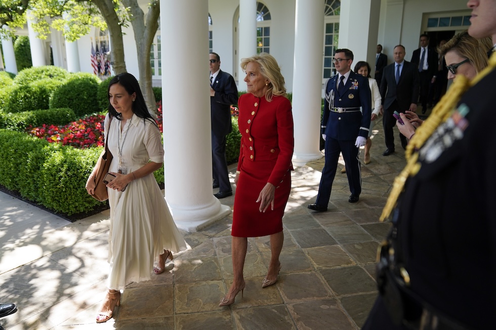 L’attuale first lady Jill Biden nel Giardino delle Rose della Casa Bianca (AP Photo/Evan Vucci, File)