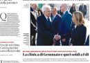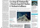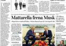 Quasi tutti i giornali di oggi dedicano l’apertura al comunicato del presidente della Repubblica Mattarella in difesa della sovranità dell’Italia, in risposta alle critiche del miliardario Elon Musk alla magistratura italiana contenute in alcuni messaggi pubblicati sul social network X. Qualche giornale titola invece sul mancato accordo fra i gruppi del Parlamento europeo sul voto per l’approvazione dei membri e dei vicepresidenti della nuova Commissione europea, il Sole 24 Ore si occupa della vendita di una quota azionaria del 15% di Monte dei Paschi di Siena da parte del ministero dell’Economia, il Fatto apre sulla gestione dei progetti di ricostruzione in Ucraina, e i giornali sportivi presentano le partite di stasera della nazionale maschile di calcio contro il Belgio per la Nations League e del tennista Jannik Sinner per la qualificazione alle semifinali delle ATP Finals.