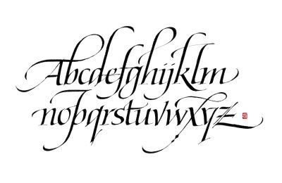 Da una parte c’è quella che potremmo chiamare calligrafia classica, che comprende tutti gli stili che possono essere identificati come tradizionali: corsivo inglese, corsivo americano, blackletter, onciale, cancelleresca, italico, spencerian e tantissimi altri. La definizione di “bello” legata a questi stili equivale all’idea di “bello” di tutti gli approcci tradizionali all’arte, e ognuno di essi viene studiato sulla base di una tradizione spesso millenaria (la forma compiuta delle maiuscole romane, che sono un po’ il Sacro Graal della calligrafia, è ancora l’epigrafe alla base della Colonna Traiana). Ma il fatto che abbiano una storia così lunga non significa che non si tratti di stili che vivono e prosperano nel presente, in usi molto più quotidiani di quello che potrebbe sembrare nell’epoca dei font: bottiglie di vino, insegne di negozi, biglietti d’auguri, logotipi, partecipazioni, certificati di laurea, tatuaggi, cartigli. Per ognuno di questi stili ogni maestro rimane studente a vita, inseguendo un ideale di mastering, di padronanza, che ha sempre margini di miglioramento. Nessuno ha mai assaporato quel genere di sazietà, la coscienza di essere arrivato alla fine del percorso, ma ogni nuova lettera tracciata sul foglio è un altro centimetro percorso lungo la strada, e il miglioramento nutre l’illusione di poter arrivare un giorno alla perfezione assoluta, un buon carburante per proseguire lungo il cammino (mi rendo conto che l’ultimo capoverso sembri un diluvio di retorica new age, ma del resto la calligrafia classica è spesso praticata copiando aforismi e citazioni dal peso specifico inaffrontabile). Dall’altra c’è quella che molti chiamano calligrafia moderna, definizione-ombrello piuttosto approssimativa e detestata sia da chi la pratica che – soprattutto, direi – da chi pratica calligrafia classica.