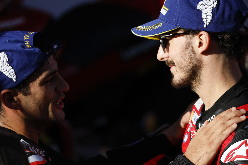 Martín e Bagnaia dopo l’ultimo Gran Premio (AP Photo/Joan Monfort)