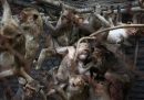 I macachi di Lopburi non hanno paura degli esseri umani, che danno loro da mangiare specialmente durante la “festa delle scimmie” che si celebra l’ultima domenica di novembre, ma anzi spesso diventano aggressivi. Negli ultimi mesi Reuters ha seguito spesso la situazione dei macachi di Lopburi: qualche giorno fa ha dedicato a questa storia un lungo reportage, con foto di Chalinee Thirasupa.