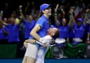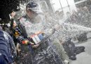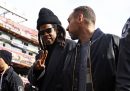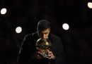 Venerdì scorso è iniziato il Torino Film Festival, che si concluderà domani, e diverse persone famose in questa raccolta sono state fotografate lì: c’erano le attrici Rosario Dawson e Sharon Stone, Alec Baldwin e il regista Giulio Base e anche Angelina Jolie che nella fotografia che abbiamo scelto riceve dallo scrittore Alessandro Baricco la “Stella della Mole”, un riconoscimento alla carriera che viene assegnato dal 2020. Poi il cantante Axl Rose prima del Gran Premio di Formula 1 di Las Vegas, in cui Max Verstappen ha festeggiato la vittoria del campionato del mondo. Ci sono anche i festeggiamenti di Matteo Berrettini e Jannik Sinner per la vittoria della Coppa Davis, alcuni esponenti politici di cui si è parlato questa settimana e alcune celebrità alla parata di Macy’s, della quale se siete curiosi potete trovare qui diverse fotografie. Per finire con Chris Pine, Sophie Hunter e Benedict Cumberbatch che guardano una partita della squadra di calcio maschile del Como.