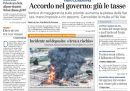 La maggior parte dei giornali di oggi si occupa in apertura dell’esplosione di ieri mattina nel deposito di prodotti petroliferi di Eni a Calenzano, che ha provocato la morte di due persone e il ferimento di ventisei, mentre tre persone non sono ancora state trovate. Qualche giornale segue invece le notizie legate alla Siria dopo la fine del regime di Assad, con le ipotesi sul futuro del paese, l’occupazione dichiarata temporanea di Israele di una “zona cuscinetto” al confine con la Siria, e la decisione di alcuni paesi europei fra cui l’Italia di sospendere la valutazione delle richieste di asilo dei cittadini siriani. Il Sole 24 Ore, il Messaggero e il Giornale aprono sull’incontro fra i leader della maggioranza di governo sulla legge di bilancio nel quale si sarebbe rimandata la riduzione dell’Irpef e decisa invece quella dell’Ires per le imprese che fanno investimenti, il Fatto e il Dubbio si occupano dell’approvazione da parte del governo del decreto sulla giustizia che vieta la pubblicazione delle ordinanze cautelari, e Libero titola sui due carabinieri indagati a Milano per falso in atto pubblico in relazione alle indagini sull’incidente fra un motorino e un’auto dei carabinieri in cui è morto Ramy Elgaml. I giornali sportivi presentano le partite delle squadre italiane in Champions League di calcio che si giocano oggi e domani.