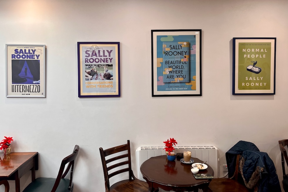 Ai muri del Castle Bookshop ci sono alcuni poster con le copertine dei romanzi di Rooney, autografati. Se a Castlebar finora la fama di Rooney non ha attirato turisti né tour letterari, a Dublino è diverso. Anche lì Intermezzo è in bella mostra nelle vetrine delle librerie. Alla Hodges Figgis, probabilmente la più celebre della capitale, sùbito oltre l’ingresso c’è un banchetto stipato di copie. «I turisti chiedono principalmente di lei, di lei e di James Joyce».