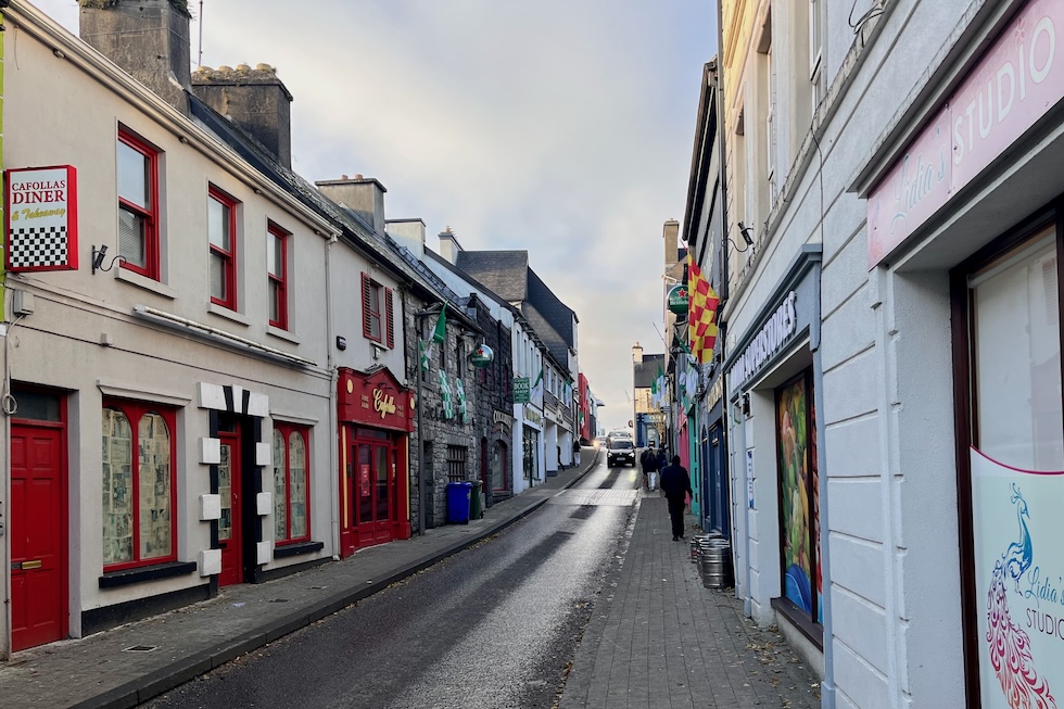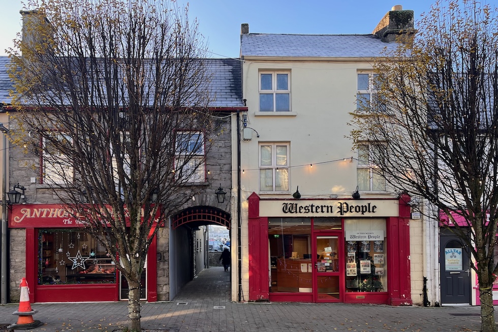 Dall’area cittadina dove si concentrano i supermercati parte una passeggiata panoramica attorno al Lough Lannagh, il lago, dove non si sente il rumore del traffico. Il parco davanti alla stazione ferroviaria è ricoperto di brina, il centro è addobbato per le festività natalizie e nella via principale, quella dei negozi e dei ristoranti, le vetrine sono appannate. Secondo Paul Carthy, che ha un negozio d’abbigliamento, il grosso del turismo è interno. Castlebar è la sede amministrativa della contea (l’equivalente di una provincia) ma risente della vicinanza di Westport, dove ci sono le spiagge e i grandi alberghi.
