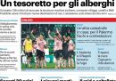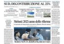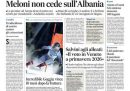 L’intervento della presidente del Consiglio Meloni al comizio di chiusura di Atreju, la festa di Fratelli d’Italia, è la notizia sulla quale apre la maggior parte dei giornali di oggi: Meloni ha difeso i centri per migranti costruiti in Albania e attaccato la segretaria del PD Schlein, quello della CGIL Landini e Romano Prodi. Qualche giornale si occupa del contenuto della legge di bilancio che in questa settimana dovrebbe arrivare all’esame dell’aula alla Camera, il Sole 24 Ore pubblica la sua indagine annuale sulla qualità della vita nelle città italiane, Libero intervista il presidente argentino Milei, e la Verità si occupa del processo al figlio di Beppe Grillo.