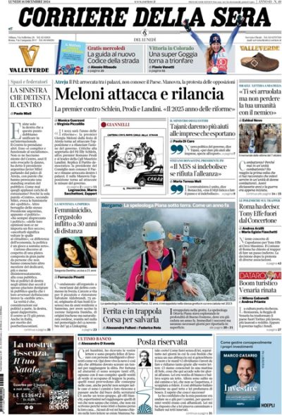 Il comizio di Meloni a Atreju, la legge di bilancio, la speleologa bloccata in una grotta, e la vittoria della sciatrice Goggia