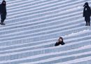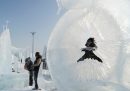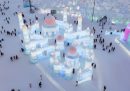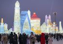 Domenica ad Harbin, nel nord-est della Cina, è stata inaugurata la 41esima edizione del Festival internazionale delle sculture di ghiaccio e neve: è il più grande evento di questo tipo al mondo e, oltre a edifici fatti tutti di ghiaccio, comprende attrazioni varie, giochi di luce e spettacoli pirotecnici. La manifestazione andrà avanti finché il meteo lo permetterà, di solito tra fine febbraio e inizio marzo: intanto migliaia di visitatori hanno cominciato ad arrivarci non solo per fotografare quella che viene soprannominata “la città di ghiaccio”, cioè la sua attrazione principale, ma anche per divertirsi sui suoi lunghi scivoli di ghiaccio, tra un selfie in mezzo ai pupazzi di neve e una passeggiata in una specie di igloo.