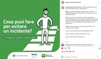 Il post di Regione Lombardia sulla sicurezza stradale pubblicato su Instagram il 13 gennaio 2025 e poi rimosso