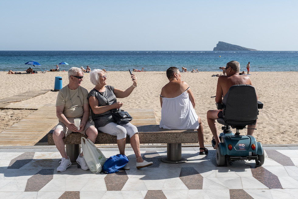 Alcuni turisti si scattano una foto sul lungomare di Benidorm, in Spagna (David Ramos/Getty Images)