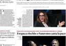 Sulla maggior parte dei giornali di oggi la notizia in apertura è la situazione a Gaza, con l’annuncio di Hamas di voler rimandare la liberazione degli ostaggi israeliani prevista per sabato per quelle che sostiene essere violazioni della tregua da parte di Israele; decisione che in molti titoli viene collegata al piano di Trump per la Striscia di Gaza e alle sue nuove dichiarazioni per cui ai palestinesi non sarebbe garantito il ritorno dopo la ricostruzione. Repubblica titola invece sull’offerta di acquisto di OpenAI da parte di un gruppo di imprenditori fra i quali Elon Musk, il Giornale apre sulle cerimonie per il giorno del ricordo delle foibe, il Fatto segue la vicenda giudiziaria della società Visibilia e della ministra del Turismo Santanchè, e Domani si occupa dell’indagine aperta dalla Corte penale internazionale sull’Italia per la liberazione del capo della polizia giudiziaria libica Almasri.