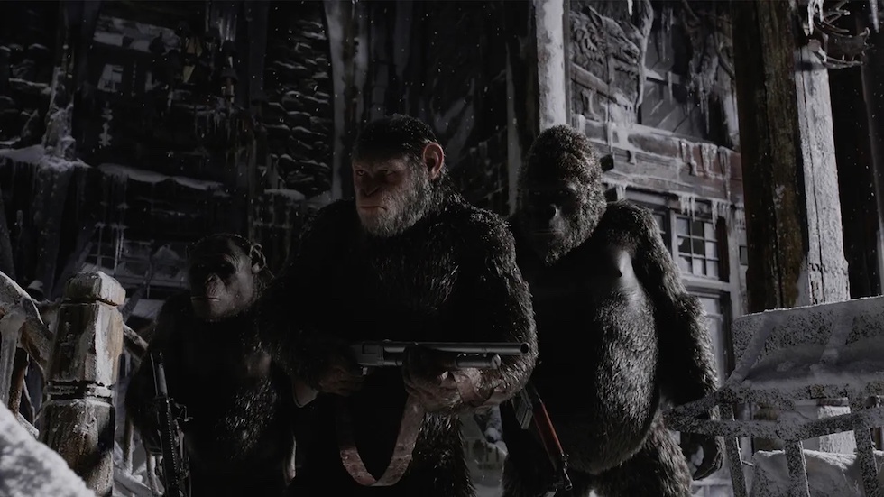 In questa scena tratta dalla saga “Il pianeta delle scimmie”, i personaggi stanno entrando in un luogo buio e quindi hanno la luce solo dietro di loro, e infatti il volto è in ombra