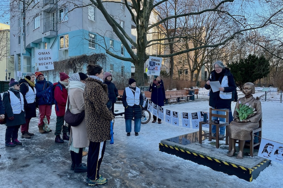 Mercoledì a Berlino un piccolo gruppo di Omas si è riunito davanti al Monumento della pace, nella parte occidentale della città, e ha ricordato le persone uccise in vari attentati compiuti negli ultimi mesi in diverse città tedesche, tra cui Magdeburgo, Solingen e Aschaffenburg. Era una cinquantina di persone, arrivate nonostante le temperature freddissime di Berlino a metà febbraio. Sopra ai giubbotti pesanti le omas indossavano dei gilet con il nome del gruppo, scritto anche su cartelli, spille e cappelli.