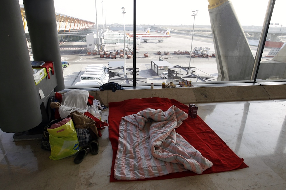 Sempre più persone dormono all’aeroporto di Madrid Barajas