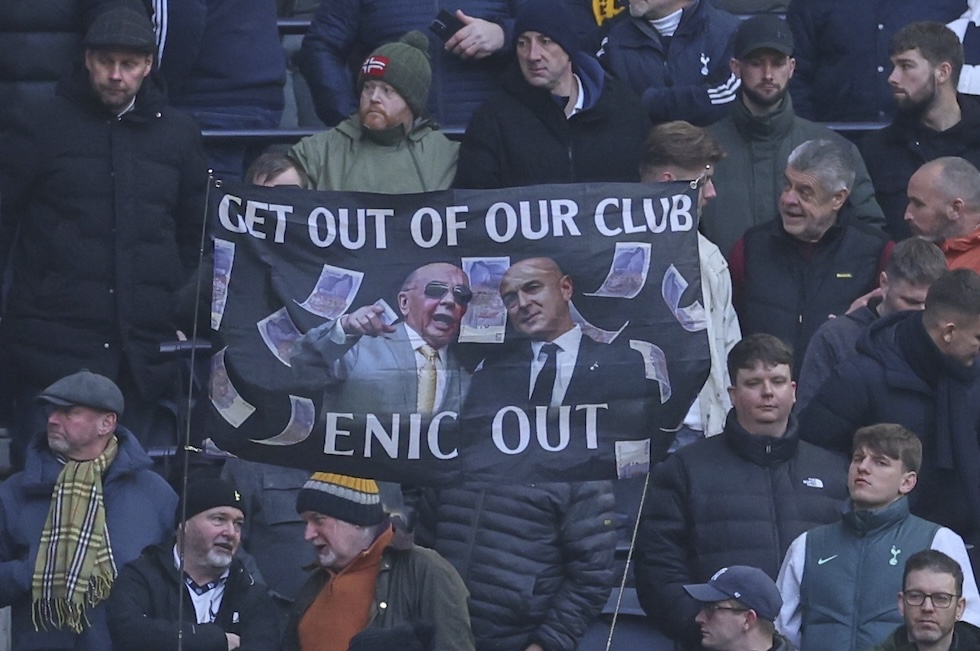 Una protesta dei tifosi contro il fondo ENIC, proprietario del club (AP Photo/Ian Walton)