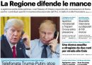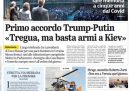 La telefonata fra il presidente degli Stati Uniti Trump e quello russo Putin per trovare un accordo su una tregua fra Russia e Ucraina è la notizia principale su quasi tutte le prime pagine: Putin ha offerto una sospensione di 30 giorni degli attacchi alle infrastrutture energetiche da parte dei due paesi, chiedendo però anche che in quel periodo l’Ucraina non riceva nuove armi dai paesi che la sostengono. Qualche giornale apre invece sui nuovi bombardamenti di Israele sulla Striscia di Gaza, che hanno interrotto il cessate il fuoco in vigore da un paio di mesi e provocato la morte di almeno 400 persone.