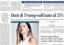 La principale notizia sui giornali di oggi è l’annuncio da parte del presidente statunitense Donald Trump di dazi del 25 per cento su tutte le auto importate nel paese. Sempre a proposito di Stati Uniti si parla ancora molto dei piani militari condivisi per sbaglio in una chat dall’amministrazione di Trump con un giornalista dell’Atlantic: ieri il giornale ha pubblicato gli screenshot della conversazione completa. Per la cronaca italiana la notizia che ha più spazio sui giornali è l’incidente avvenuto a Torino, dove un bus turistico è caduto nel Po: a bordo c’era solo l’autista, che è morto.