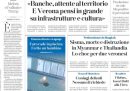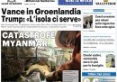 La principale notizia sui giornali di oggi è il forte terremoto che ha causato la morte di almeno mille persone in Myanmar. Il Corriere della Sera ha in evidenza un’intervista alla presidente della commissione europea Ursula von der Leyen in merito al piano per la difesa europea. Alcuni giornali nazionali dedicano invece l’apertura alle nuove regole approvate dal Consiglio dei ministri in merito al rilascio della cittadinanza italiana e alla gestione dei centri per migranti in Albania.