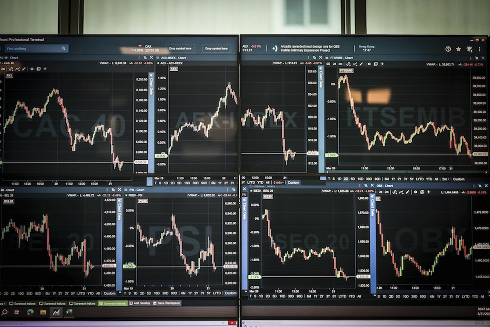 La postazione di un operatore della borsa francese, il 21 marzo (AP Photo/Thomas Padilla)