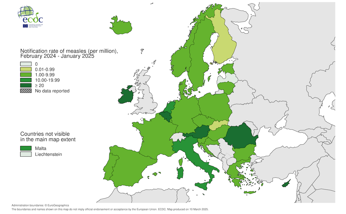 I contagi rilevati nella “Regione Europea” dell’OMS nel 2024 sono stati 127.350 e nel 40 per cento dei casi hanno riguardato bambini con meno di cinque anni. Più della metà dei contagi ha reso necessario il ricovero in ospedale e sono stati registrati almeno 38 decessi, ma il dato potrebbe aumentare nelle prossime settimane con la raccolta di ulteriori informazioni dai paesi coinvolti.