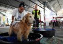 Nella nostra raccolta animalesca della settimana troviamo i due animali domestici più diffusi, ma in due contesti diversi dal solito, legati alle notizie: c’è un cane impegnato nei soccorsi per il forte terremoto di venerdì scorso con epicentro in Myanmar, bagnato da una donna per proteggerlo dal caldo; e c’è un gatto abbracciato da una donna ucraina, sfollata dalla sua città, nel centro di transito in cui si trova. Ci sono poi una tartaruga di 125 anni, un piccolo di sula fosca che fa capolino da sotto le zampe di uno dei genitori, e un falco pescatore, che ha in effetti appena pescato un pesce e lo tiene tra gli artigli.