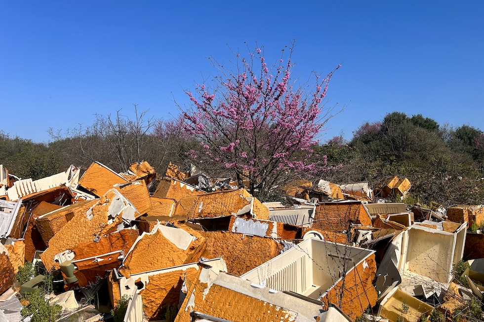Davanti all’ex fabbrica di polveri da sparo Stacchini, a Bagni di Tivoli in provincia di Roma, ci sono i resti di alcuni frigoriferi smontati e privati di tutti i componenti rivendibili. Il luogo è in evidente stato di abbandono, e si può entrare seguendo un sentiero che aggira le mura di recinzione passando tra arbusti, piante fiorite ed erba alta da cui spuntano carcasse di elettrodomestici. Più avanti, centinaia di frigoriferi smembrati sono accatastati attorno agli alberi fioriti, o abbandonati tra i rovi e vicino agli ex depositi di esplosivi.