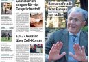Sono due le notizie principali su cui aprono i giornali di oggi: la chiusura del congresso della Lega, con la conferma del segretario Matteo Salvini che ha espresso la sua intenzione di tornare a fare il ministro dell’Interno, e le conseguenze dei dazi decisi dal presidente degli Stati Uniti Trump, con le preoccupazioni per gli effetti sui mercati finanziari e le possibili reazioni dei paesi colpiti. Il Fatto intervista il leader del Movimento 5 Stelle Conte dopo la manifestazione pacifista di sabato, mentre i giornali sportivi commentano i risultati delle partite di ieri della Serie A maschile di calcio.