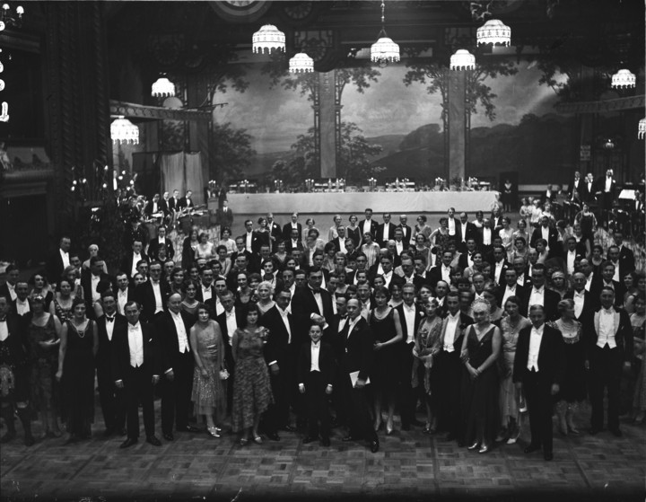 La foto originale usata in versione ritoccata alla fine del film del 1980 Shining, scattata nella sala da ballo del Royal Palace Hotel a Londra, il 15 febbraio 1921 (Morey/Topical Press Agency/Hulton Archive/Getty Images)