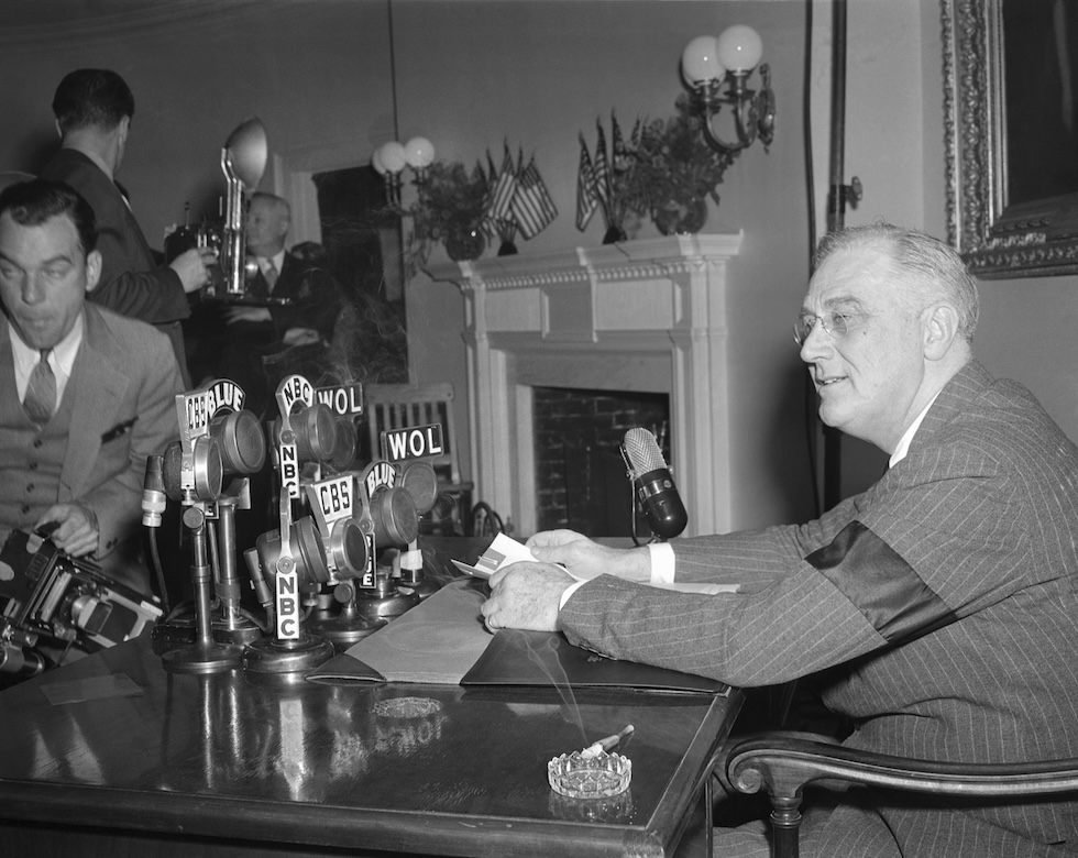 Dopo il bombardamento giapponese di Pearl Harbor, la base navale americana alle Hawaii, nel 1941 gli Stati Uniti di Roosevelt entrarono infine in guerra, prima contro il Giappone e poi contro tutte le potenze dell’asse. Le “chiacchiere al caminetto” si intensificarono e nel dicembre 1943 con uno slogan il presidente disse di essere passato da «Dottor New Deal a Dottor Vinci la Guerra». Fra le sue decisioni più criticate ci fu quella di chiudere in campi d’internamento oltre 100mila persone giapponesi (o statunitensi di origine giapponese) durante la guerra.