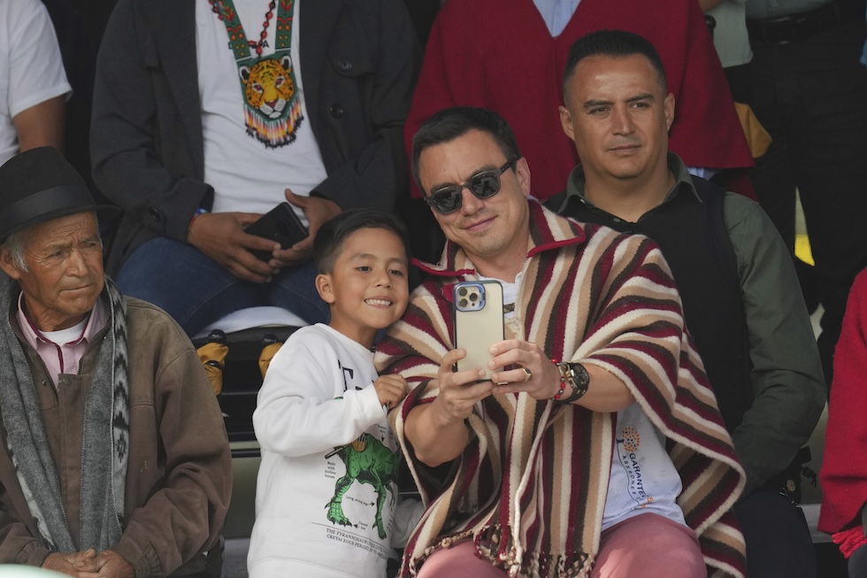 Daniel Noboa posa per un selfie a Pelileo (AP Photo/Dolores Ochoa)