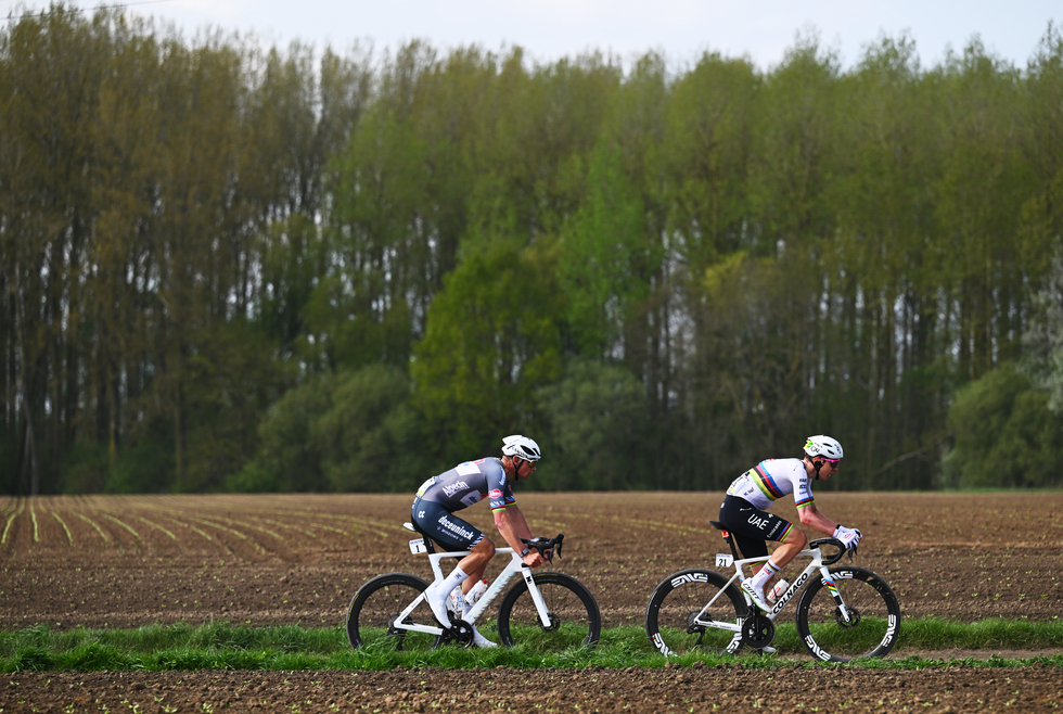 Come nelle due recenti classiche monumento, la Milano-Sanremo e il Giro delle Fiandre, è stata una sfida tra van der Poel e Tadej Pogačar, il fenomenale ciclista sloveno detentore tra le altre cose del Giro d’Italia, del Tour de France e del Mondiale su strada. Pogačar e van der Poel hanno staccato il gruppo a 71 chilometri dalla fine; assieme a loro c’era anche il belga Jasper Philipsen, compagno di squadra di van der Poel all’Alpecin-Deceuninck, che però a 45 chilometri dall’arrivo è rimasto pure lui indietro.