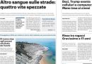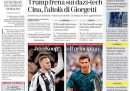 Quasi tutti i giornali nazionali di domenica hanno come notizia d’apertura la decisione del presidente degli Stati Uniti Donald Trump di esentare smartphone, computer e altri dispositivi elettronici dai nuovi dazi. Si parla molto anche degli scontri che ci sono stati sabato pomeriggio a Milano tra alcuni manifestanti e le forze dell’ordine durante un corteo per la Palestina, e della morte dell’ex bandito sardo Graziano Mesina. Per lo sport la notizia principale è il tennista italiano Lorenzo Musetti che si è qualificato per la finale del torneo Masters 1000 di Monte Carlo.