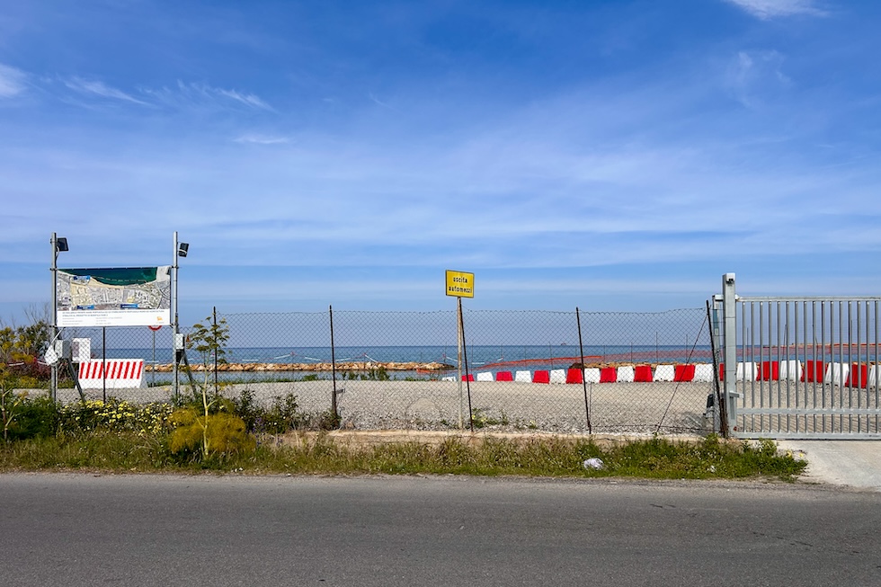 L’ingresso di una «discarica a mare» a Crotone (Angelo Mastrandrea/il Post)